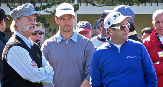 Actors Bill Murray and Josh Duhamel with Singer Huey Lewis at the AT&T Pebble Beach National Pro-Am Golf Tournament