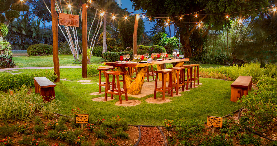 Located between Banderas Bay and the Sierra Madre Mountains, CasaMagna Marriott Puerto Vallarta offers an exclusive private dining experience for guests in its very own Herb Garden. Resort guests can enjoy dining al fresco at the handcrafted wooden table (along with 9 of their friends), while taking in the scents of the surrounding fresh herbs (including rosemary, peppermint, thyme, and more). The hotel offers garden tours guided by chefs who explain the way the spices are used in local cuisine, followed by a cooking demonstration and a four-course dinner.
