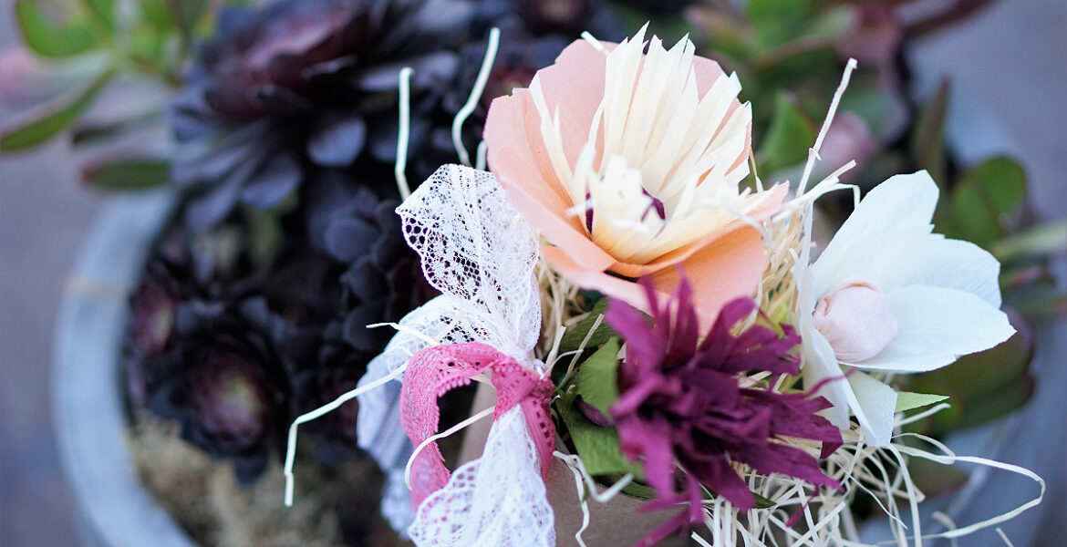 To help you create DIY crepe paper flowers at home, today’s step-by-step tutorial comes courtesy of Carmel Valley Mercantile and Tacklebox Creative.