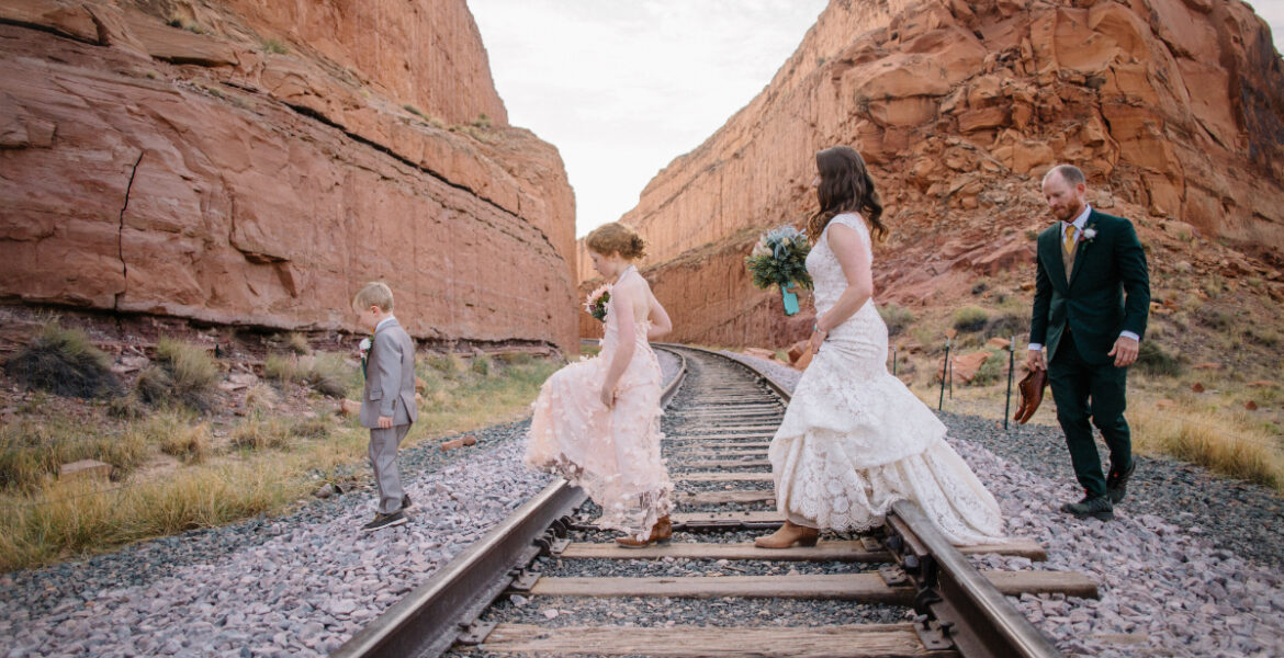 In the Fall of 2017, accompanied by the bride’s children, the couple flew to Moab, Utah to be married under the soaring pinnacles and stunning natural stone arches at Arches National Park.