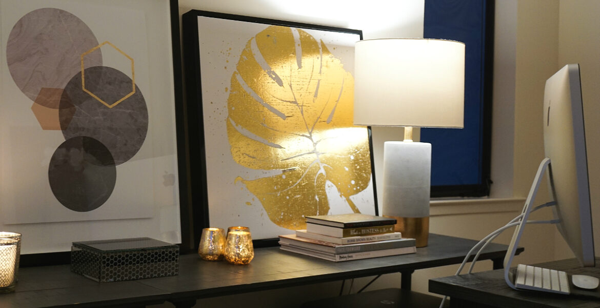 Whether you love chic fashion illustrations, motivational quotes, or eye-catching abstract art, choose pieces that reflect your personal style and make you feel inspired. You can even accessorize with complimentary home goods, such as candles and decorative jewelry boxes (which can act as stylish business card holders).
