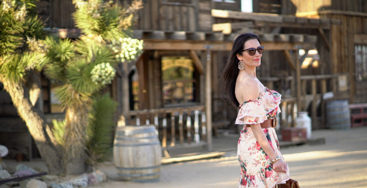 - Get your kicks in a ruffle dress and western-inspired boots. Whether you’re kicking back in the desert or just marching into town, comfortable boots are always a great option.