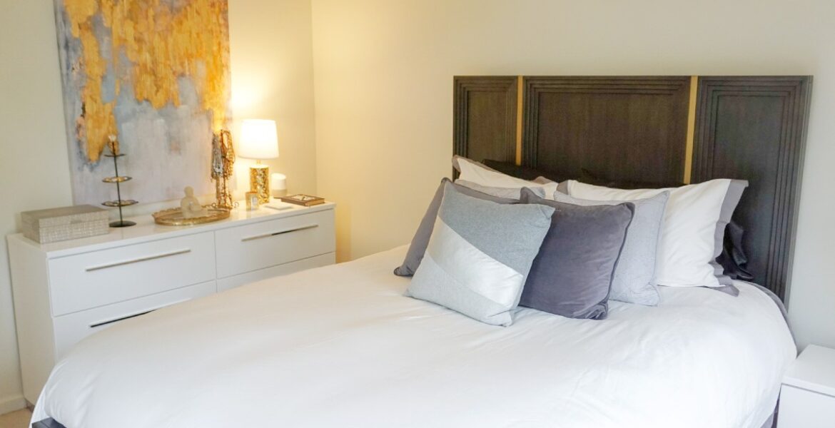 While I can’t have guests over at the present moment, in preparation for the upcoming months, I decided to finish a guestroom I was working on. To create a tranquil, vacay vibe space, I opted for a contemporary coastal decor theme for this room. I was so happy to find this adorable budget-friendly bedding on Amazon, as it perfectly fits in.